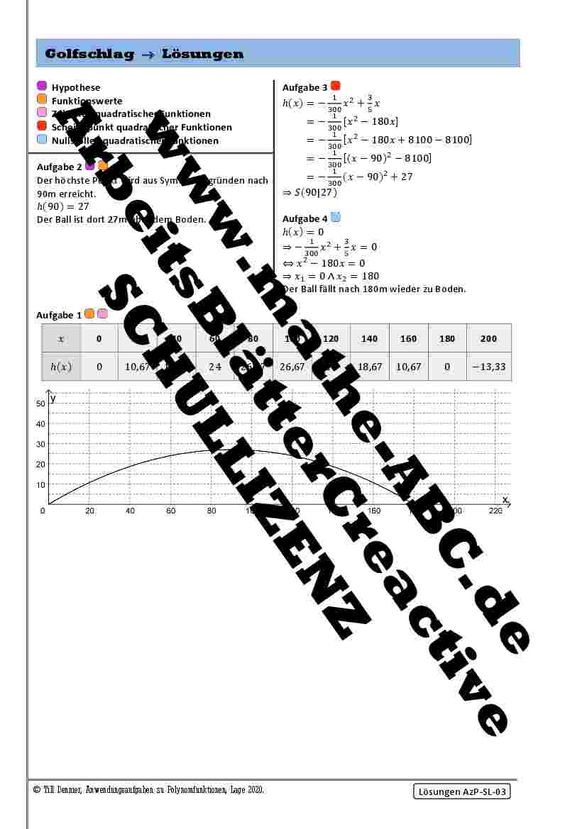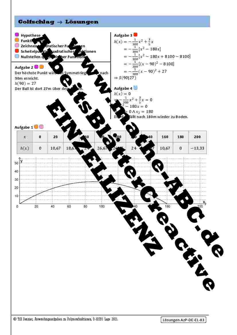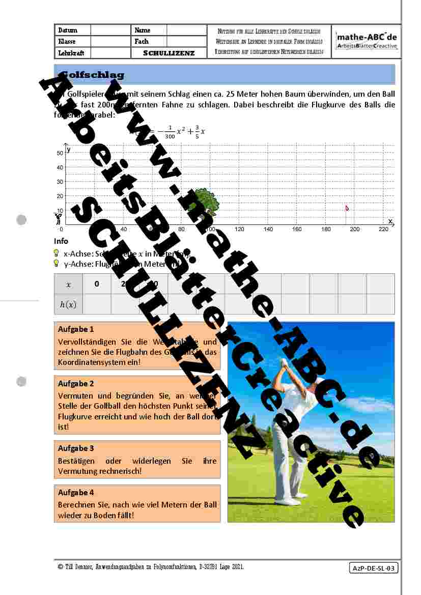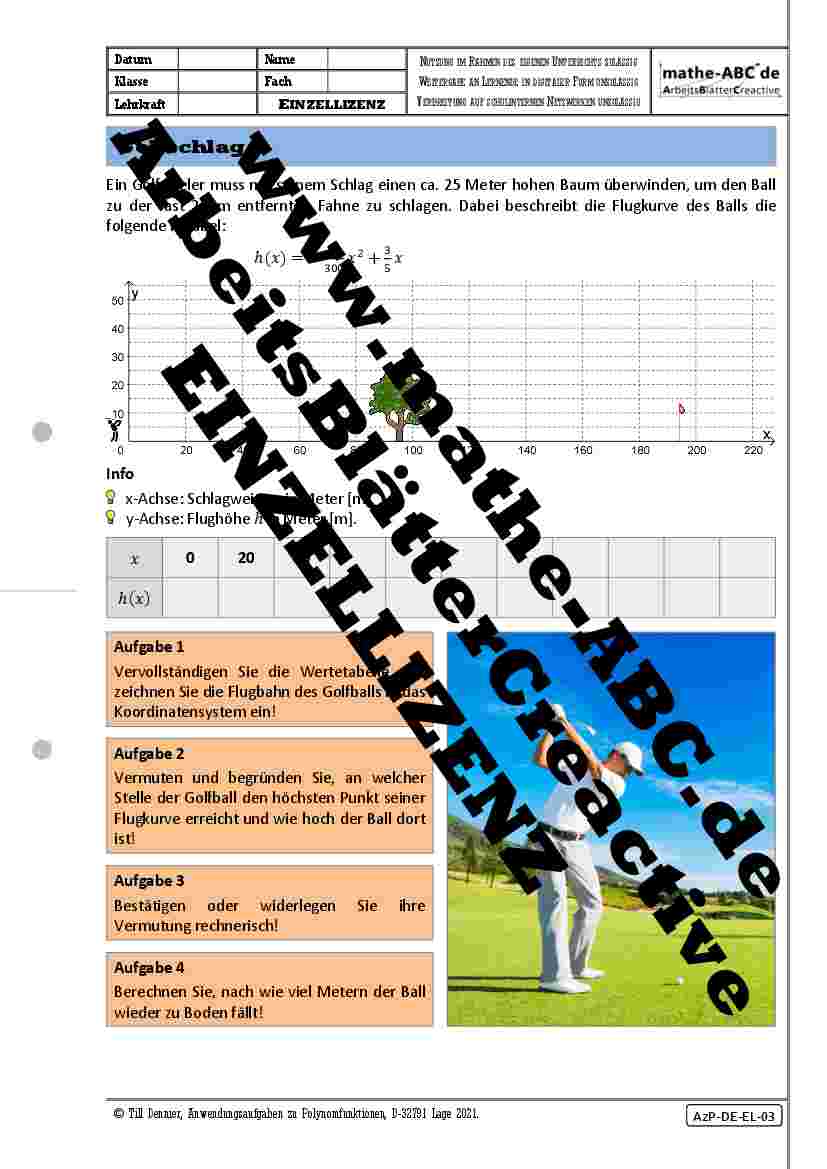 Dieses Arbeitsblatt ist Inhalt des eBooks "Anwendungsaufgaben zu Polynomfunktionen".